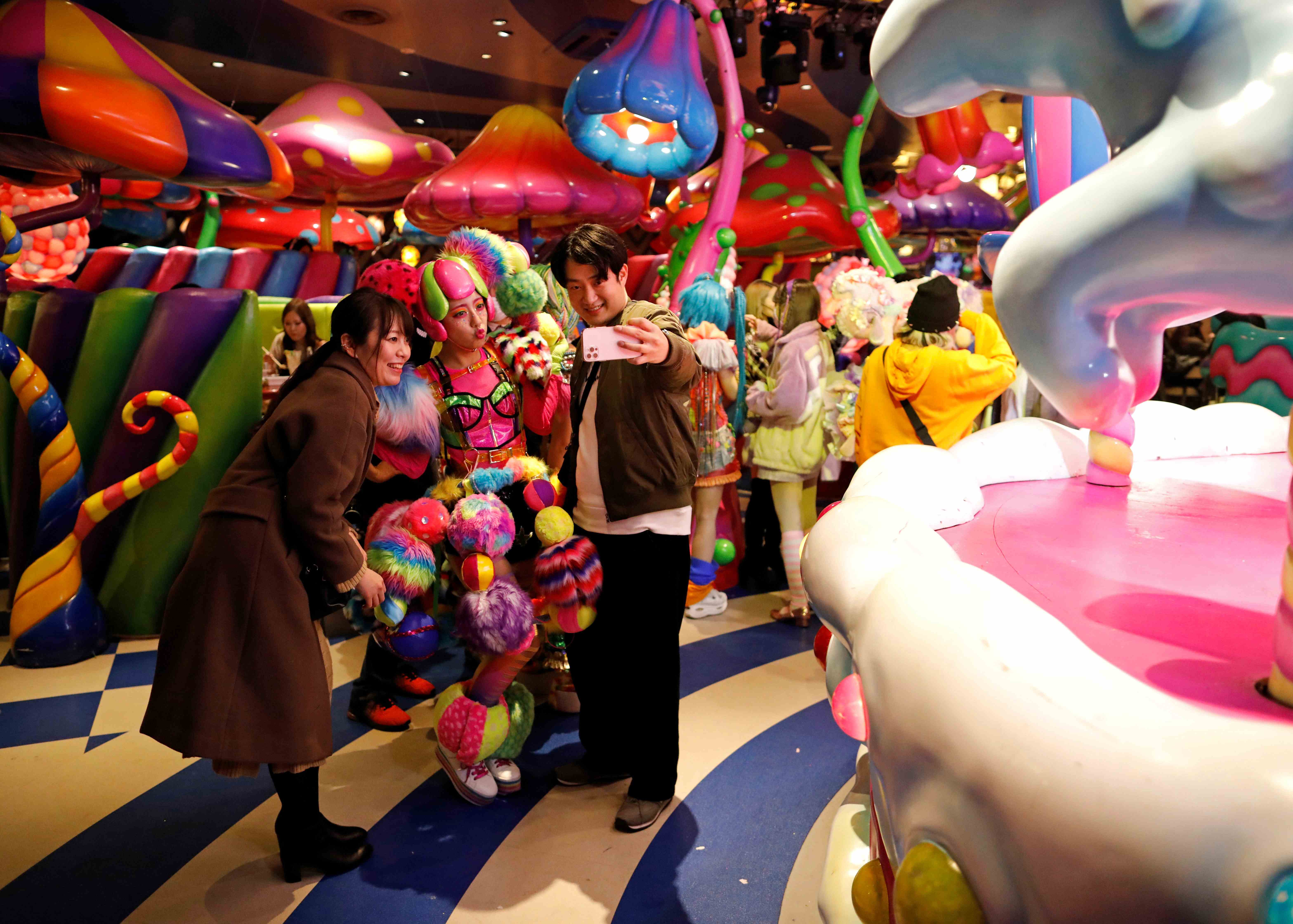 A funky aesthetic of outlandish colors and designs made Kawaii Monster Cafe in the capital’s youth culture hotspot of Harajuku a hit, drawing overseas A-listers, such as reality star Kim Kardashian, singer Dua Lipa, and Jenny of K-pop’s Blackpink.